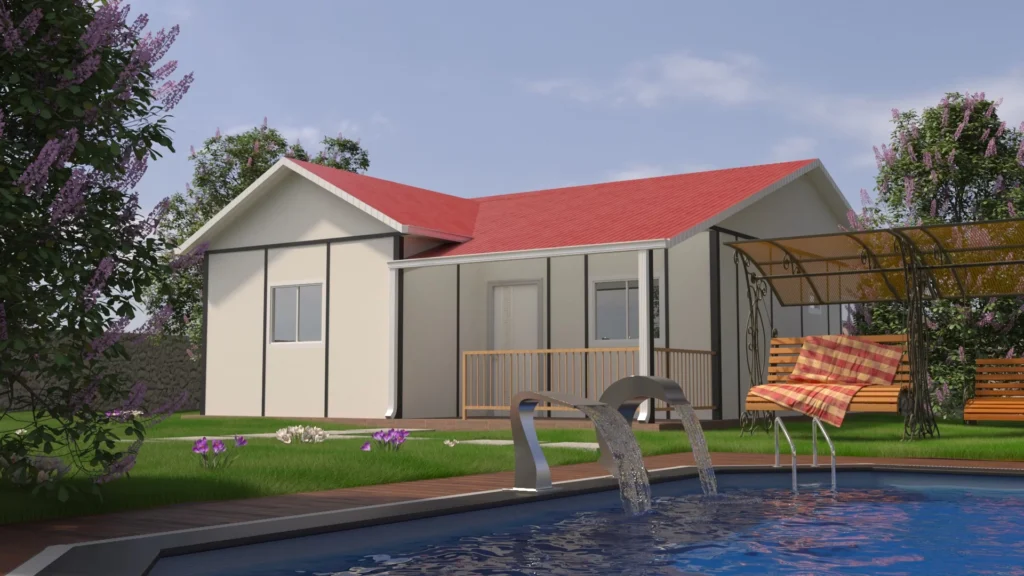 Çevre dostu malzemelerle inşa edilen bu prefabrik ev, enerji verimliliği yüksek yapısıyla doğayla uyumlu ve ekonomik bir yaşam tarzını destekler. Sağlam yapısı ve kaliteli malzemeleri sayesinde uzun yıllar boyunca güvenle kullanılabilir.